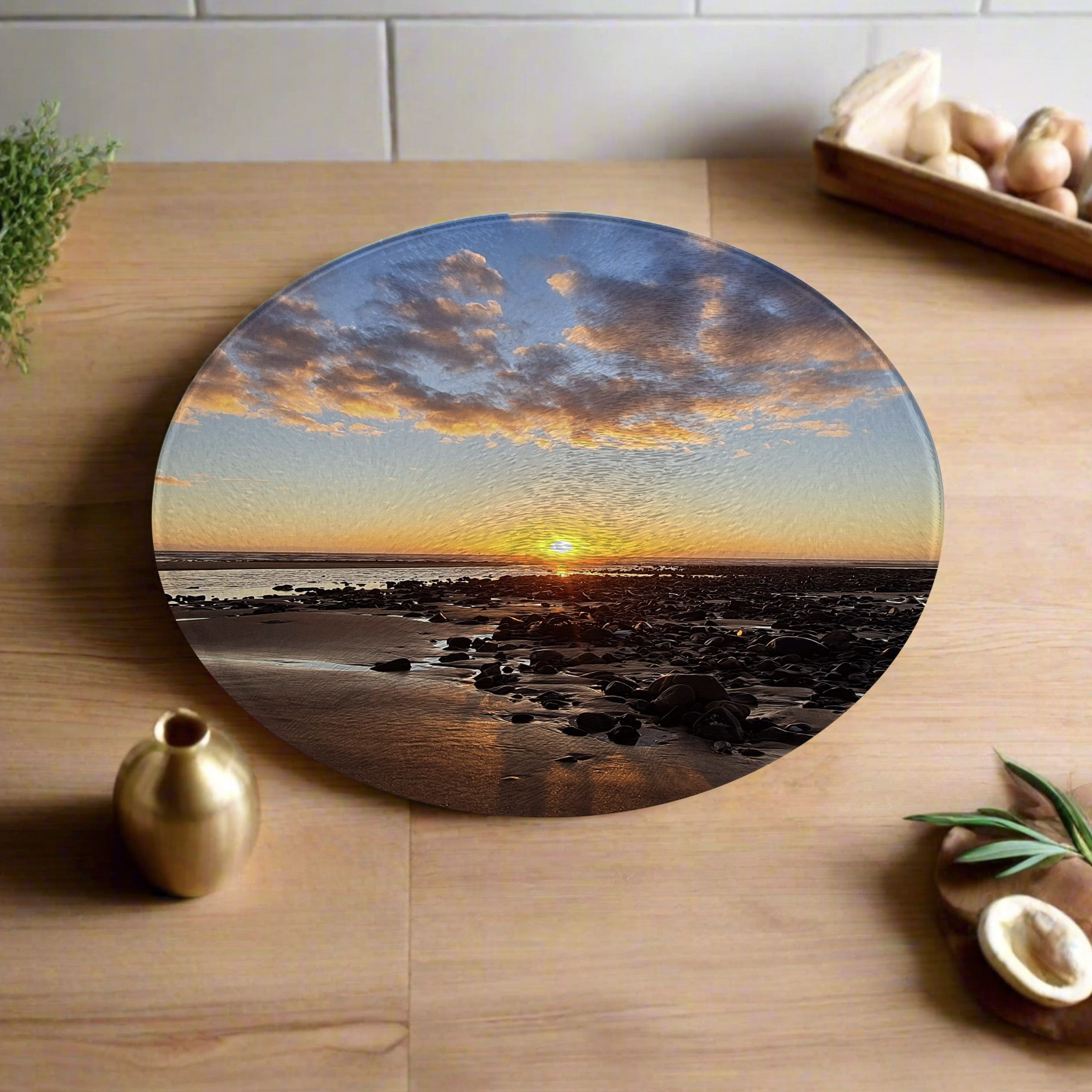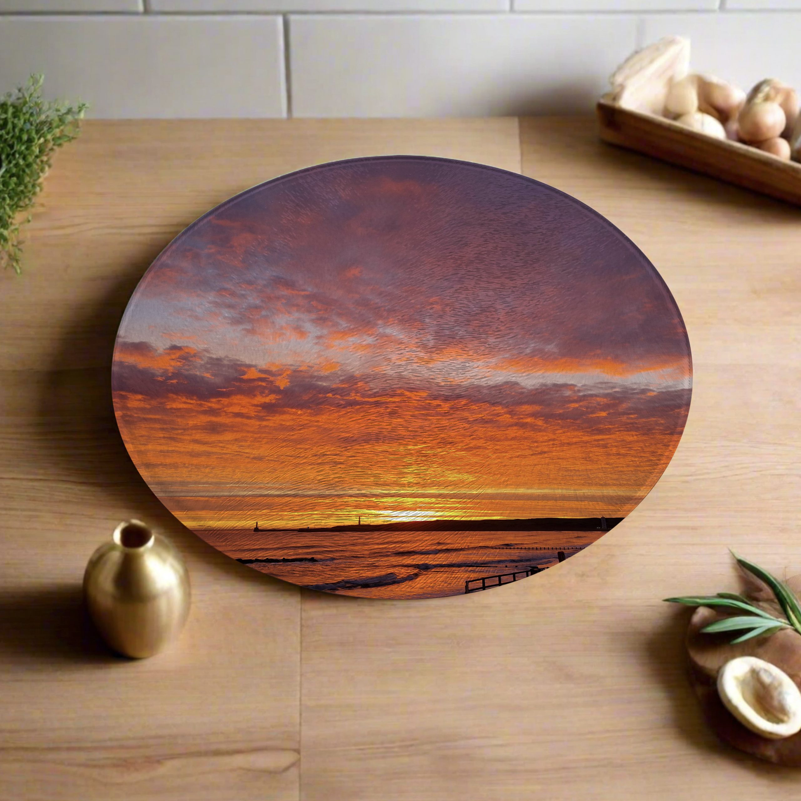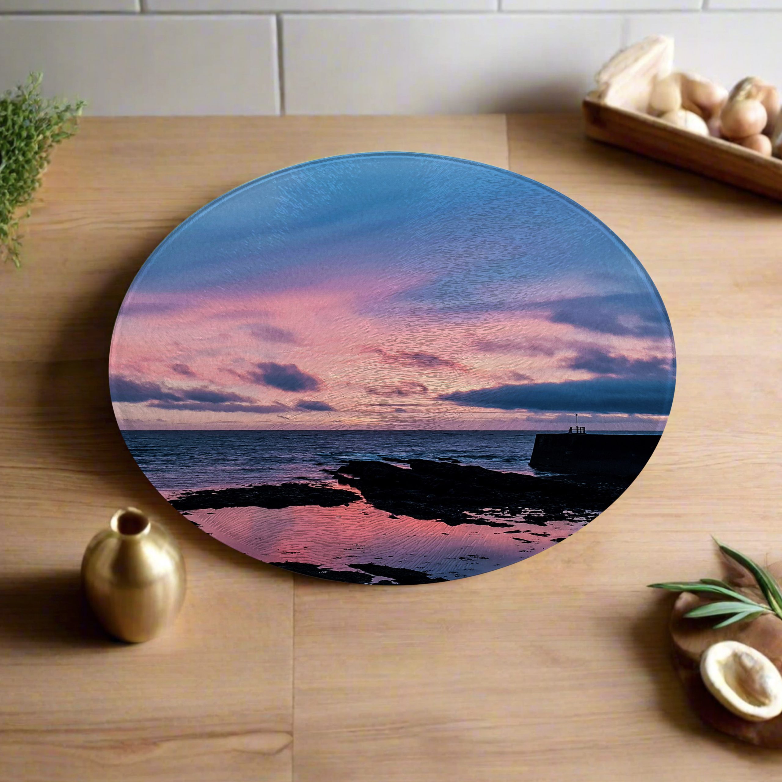 These round worktops are made from tempered glass which is heat proof up to 200°C. This makes it a perfect surface for placing hot pans and roasting tins when they come out of the oven. The glass worktops have a textured finish known as a ‘chinchilla’ effect on the surface.