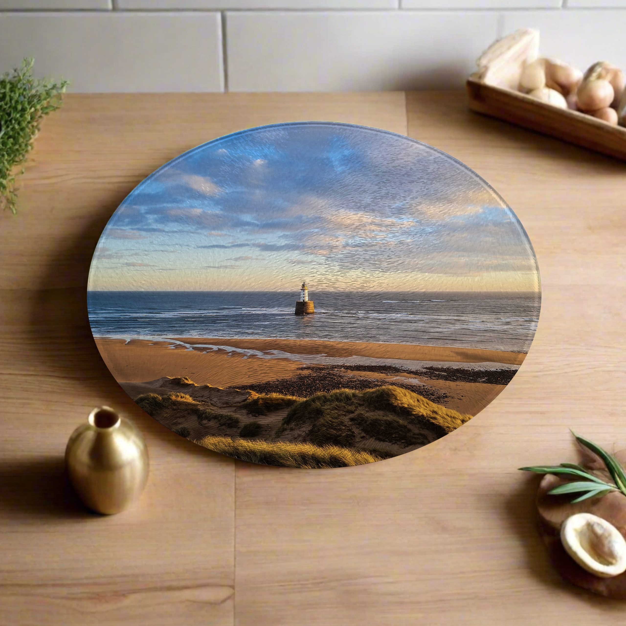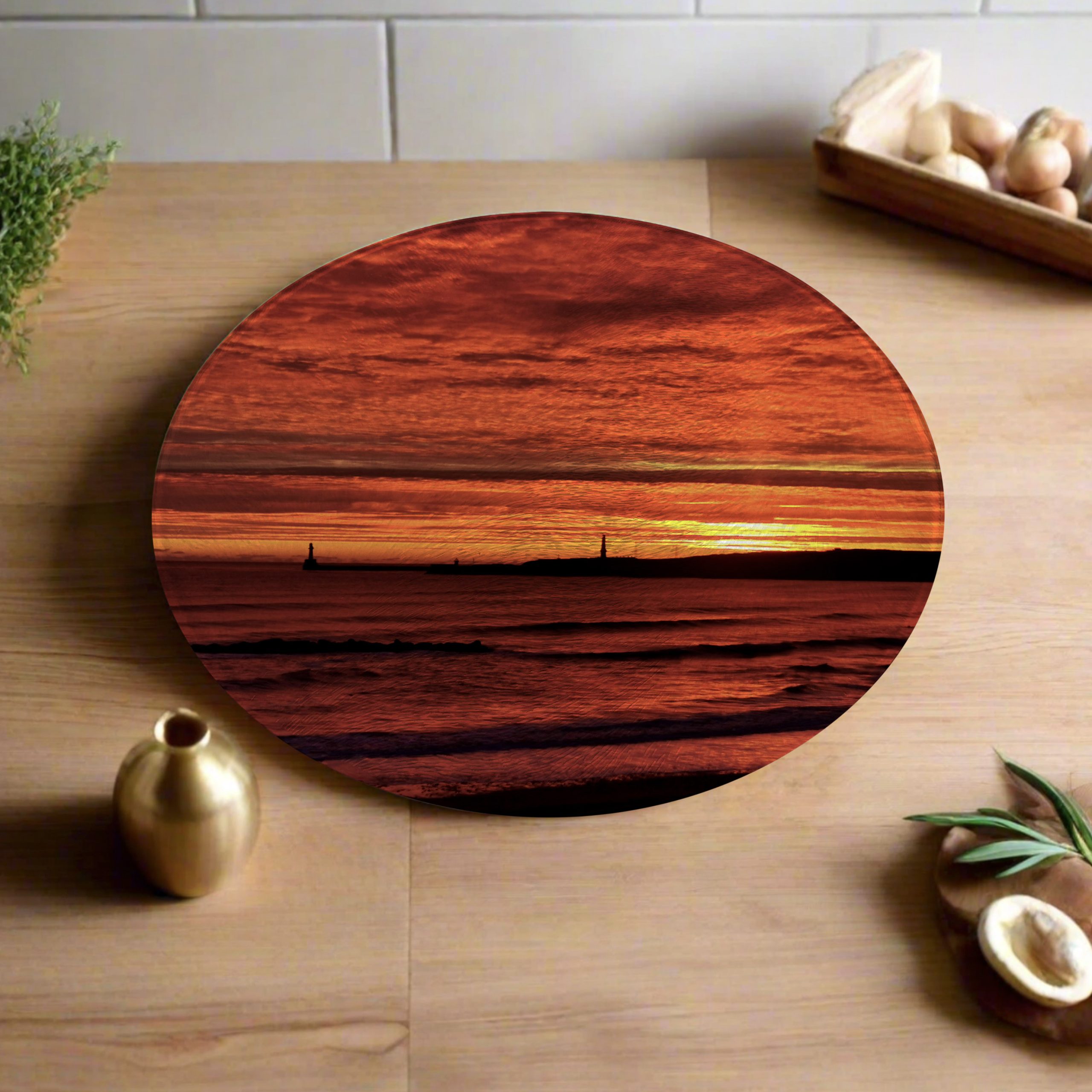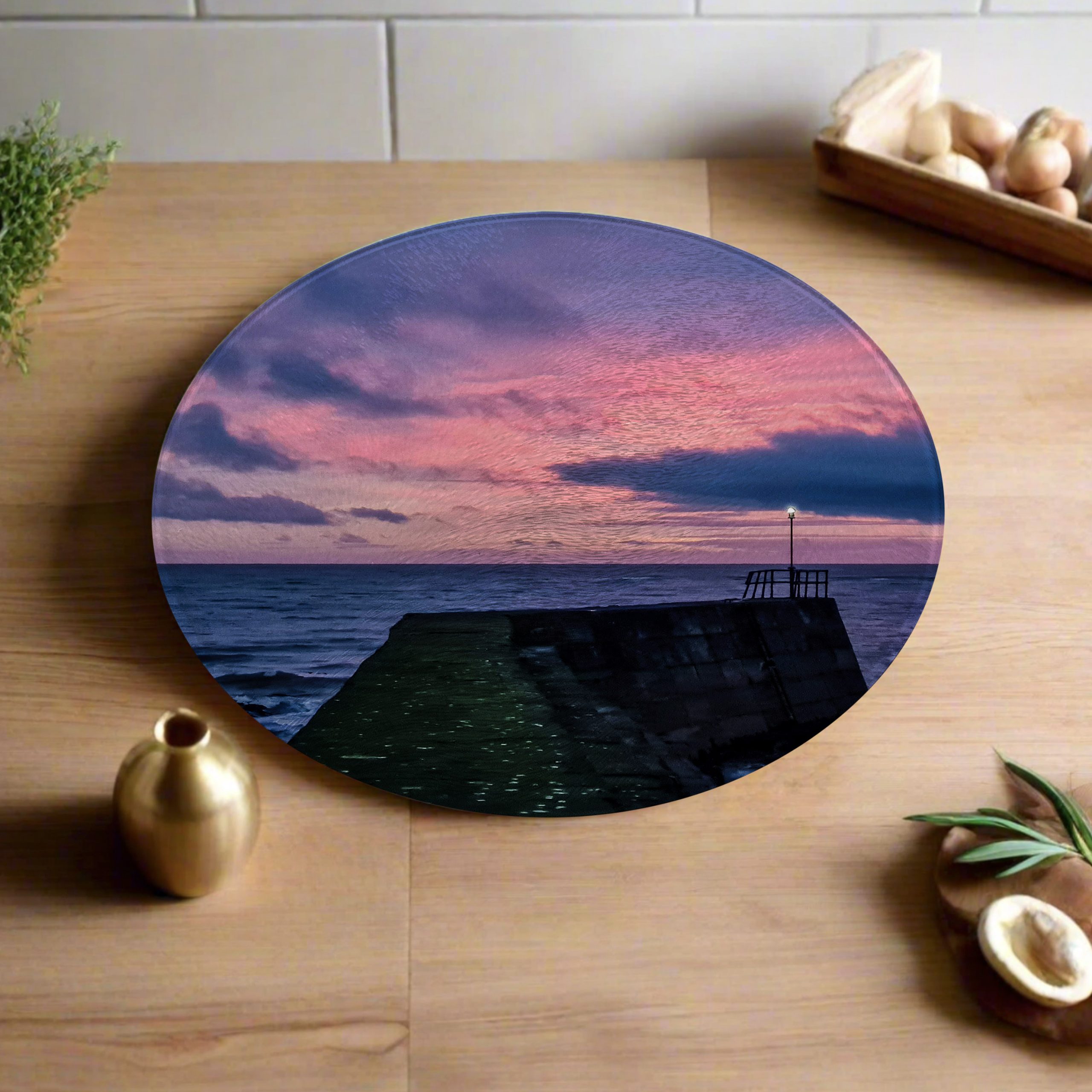These round worktops are made from tempered glass which is heat proof up to 200°C. This makes it a perfect surface for placing hot pans and roasting tins when they come out of the oven. The glass worktops have a textured finish known as a ‘chinchilla’ effect on the surface.